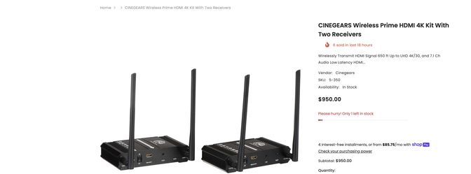 Wireless Prime HDMI 4K Kit With Two Receivers$395Dana Point, CA