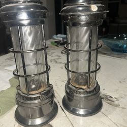 Vintage 1990's Pair of Metal and Clear Swirled Glass Oil Lamps Long Wicks GUC$30Fort Lauderdale, FL