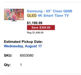 Samsung - 65" Class Q80B QLED 4K Smart Tizen TV$600Dillsburg, PA