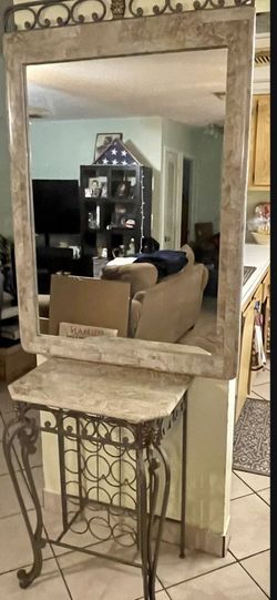 Tuscan / Mediterranean Console Table W/ Wine Rack & Mirror Set – Excellent Condition$135Boca Raton, FL