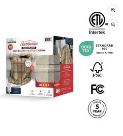 Sunbeam Electric Heated Throw Blanket Earthy Plaid Super Soft Microplush 4 Heat Settings Oversized 60x80$30Shafter, CA