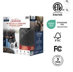 Sunbeam On-the-Go Cordless Heated Throw Blanket with Hood Gray Nylon/Microplush 50x66$40Shafter, CA