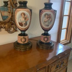 Estate Antique Enameled Glass Urn Portrait Lamps $300 Each$300San Diego, CA