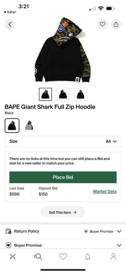 Bape Giant Shark Hoodie Size Large$300Los Angeles, CA