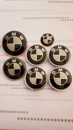 7pcs/Set Replacement for 4Pcs 68mm Wheel Center Caps,1Pc 82mm Hood Emblem,1Pc 74mm Trunk Emblem, 1Pc 45mm Steering Wheel Emblem (Blue/Silver Carbon) $15Queens, NY