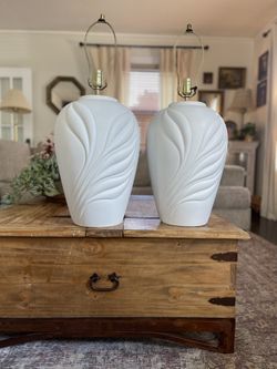 Pair Of Vintage Postmodern 80’s White Ceramic Botanical Design Large Table Lamps$250Dearborn, MI