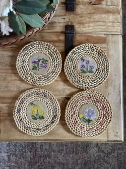 Set of 4 Cross Stick Floral Woven Kitchen Trivets, Wall Hanging Home Decor $20Dearborn, MI