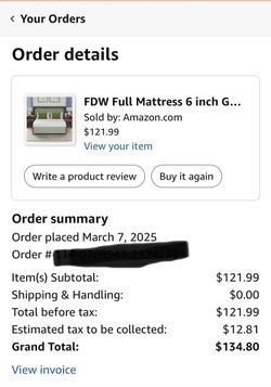 FDW | 6 Inch Full Mattress | Medium Firm | Gel Memory Foam Mattress | White | Bed in a Box, CertiPUR-US Certified | Pressure Relief, Cooling Ventilate$50Lynnwood, WA