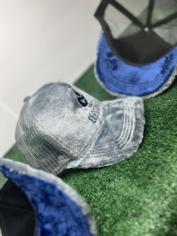 Grey And Blue Fuzzy Velvet Trucker Hat $40Dallas, TX