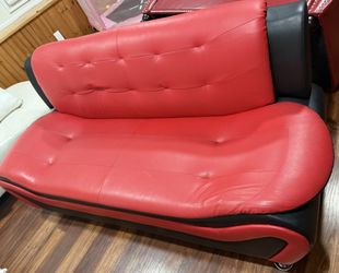 BLACK AND RED FAUX LEATHER COUCH$250Randolph, MA