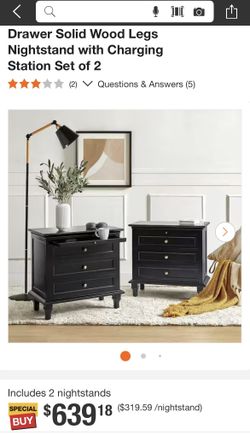 Home Depot Julia Black 27 in. H Traditional 3-Drawer Solid Wood Legs Nightstand with Charging Station Set Of 2 $180Lake Elsinore, CA