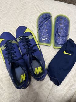 SoldNike Mercurial Vapor 14 Academy FG/MG soccer cleats and matching shin guards. $30Riverside, CA