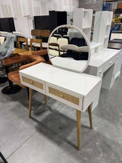 Daals Frances Woven Rattan Vanity Table with Mirror, White(Some damage)$75Flowery Branch, GA