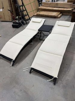 3-Pieces Steel Frame Poolside Folding Chairs Wicker Outdoor Chaise Lounge Chair with Beige Cushion$80Flowery Branch, GA