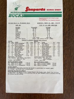 Milwaukee Bucks vs Chicago Bulls 3/10/82 Lineup Sheet $10Bradenton, FL