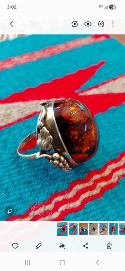 Huge Cognac Baltic Amber Sterling Ring$150Elmhurst, IL