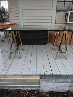 VINTAGE GLASS TOP DESK WITH CHROME SAWHORSE LEGS$320Kaufman, TX