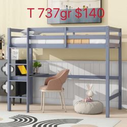 Twin Loft Bed w/ Desk & Guardrail, Rubber Wood Frame(737gr)$140Duluth, GA
