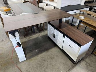 Farmhouse L Shaped Standing Desk, 55 inch Height Adjustable Corner Desk with Storage Drawers$260Duluth, GA