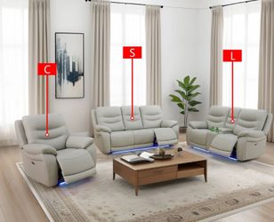 Light Grey Breathing Leather And PVC 3 PCs Living Room Recliner Sofa Set Brand New $1,700Monroe Township, NJ