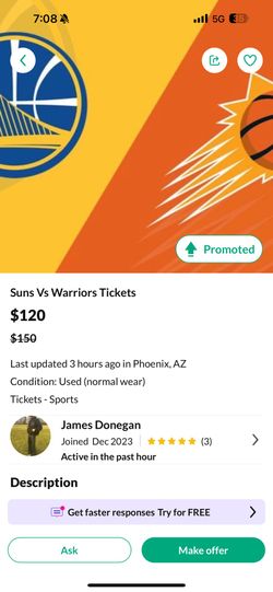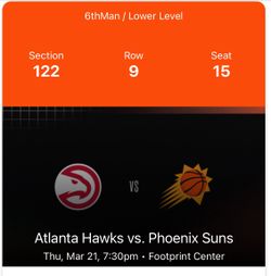 Suns vs Hawks$150Sun City, AZ
