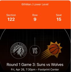 Suns vs Wolves Game 3$320Peoria, AZ