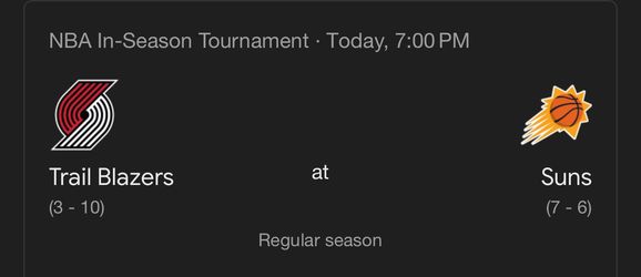 Suns Vs Blazers$150Peoria, AZ