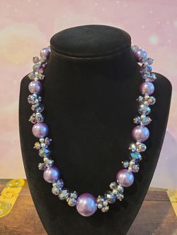 Vintage Purple AB Faceted Crystal Necklace Faceted Crystal Clusters, Large Pearlescent Beads 19" Magnetic Closure F11$25Pomona, CA