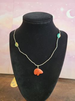 Silvertone with Turquoise Nuggets Red Jasper Fetish Bear Pendant 21" Necklace F9 $25Diamond Bar, CA