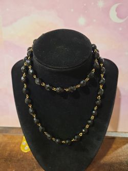 Jet Black Faceted Bead Necklace Goldtone 28" Antique Style Hook Clasp F9$23Diamond Bar, CA