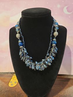 Blue and Silver Crystal Beaded Cluster with Small Faceted Blue Beads 34" Eternity Necklace F9$25Diamond Bar, CA