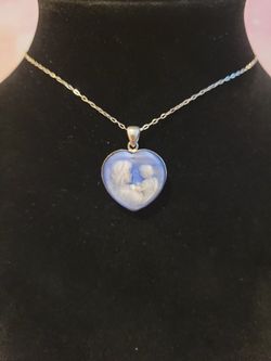 Vintage 925 Sterling Silver Mother & Child Carved Agate Pendant Sterling Silver 21" Chain F9 $40Diamond Bar, CA