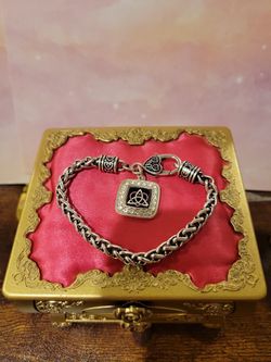Celtic Knot Sister's Charm Symbol Rope Chain Bracelet Silvertone With Rhinestones 8"F9$18Diamond Bar, CA