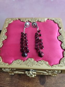 Sterling Silver Dangle Earrings Dark Red Faceted Beads 2.5" Cluster Drop F9$17Diamond Bar, CA