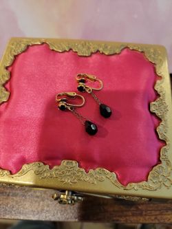 Vintage Gold Tone Black Faceted Glass Bead Dangle Drop Clip On Earrings Pre-Owned in Good Vintage Condition F9$15Diamond Bar, CA