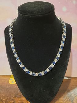 Round Sapphire Blue Color & Cubic Zirconia Rhinestone Silverplated Eternity Necklace 17" F9$30Pomona, CA