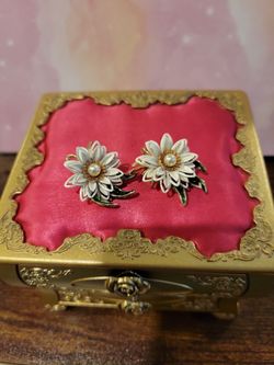Vintage White Enamel Faux Pearl Goldtone Flower Clip-on Earrings F9$15Diamond Bar, CA