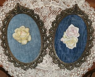 X2 VINTAGE ORNATE BRASS METAL ITALY FRAME PORCELAIN CAPODIMONTE ROSE 3D ITALIAN PLAQUE PICTURE ART DECOR$70San Tan Valley, AZ