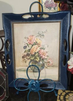 VINTAGE WOODEN NAVY BLUE FRAME FLORAL FLOWER ROSE BOUQUET PICTURE WALL ART DECOR PLAQUE$30Queen Creek, AZ
