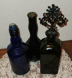 X3 VINTAGE DARK BLACK COBALT BLUE GLASS PERFUME BOTTLE GOTHIC FILIGREE STOPPER SET $40San Tan Valley, AZ