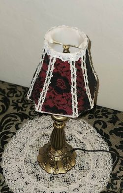 VINTAGE BLACK ROSE LACE WHITE BURGUNDY BOUDOIR TABLE LAMP SHADE BRASS BASE DECOR$45San Tan Valley, AZ
