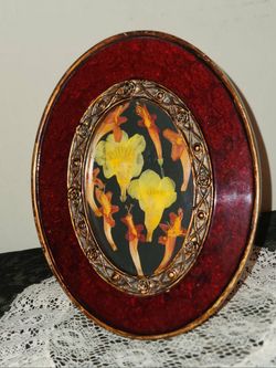 VINTAGE ORNATE BURGUNDY RED GOLD BRONZE FRAME REAL DRIED PRESSED FLOWERS PICTURE ART TABLE DECOR$25San Tan Valley, AZ