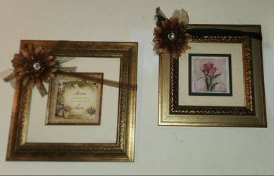 X2 VINTAGE GOLD BRONZE FRAME FLORAL FLOWER RIBBON BOW LACE PICTURE ART WINTERLE OLSON BOUQUET HOME LIVE LOVE LAUGH DECOR PLAQUE$50San Tan Valley, AZ