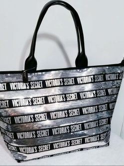 NEW VICTORIA'S SECRET SILVER BLING SEQUIN VS LOGO XL LARGE DUFFEL BAG TOTE PURSE SATCHEL TRAVEL CARRY ON$25San Tan Valley, AZ