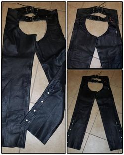 NEW UNISEX MEN'S WOMEN'S ADULT SIZE MEDIUM BLACK INTERSTATE GENUINE LEATHER RIDING MOTORCYCLE PROTECTIVE CHAPS$45San Tan Valley, AZ