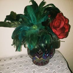 VINTAGE IRIDESCENT GLASS MOSAIC PARTYLITE PARTY LITE TEALIGHT CANDLE HOLDER BEADED PEACOCK FEATHER FLOWER ARRANGEMENT ROSE TABLE DECOR $25San Tan Valley, AZ