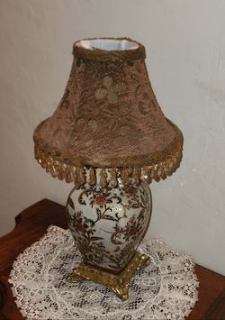 VINTAGE BROWN FLORAL BEADED FRINGE GOLD BURGUNDY RED FOOTED SIDE TABLE LAMP & SHADE$50Queen Creek, AZ