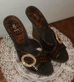 NEW W/I BOX BAKERS BROWN GOLD CRYSTAL BLING BEADED EMBELLISHED PLATFORM WEDGE SANDAL HEELS SIZE 7.5$20San Tan Valley, AZ