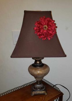 VINTAGE MOSAIC AMBER ACCENT TABLE LAMP BASE W/ RED FLORAL FLOWER SHADE$30San Tan Valley, AZ