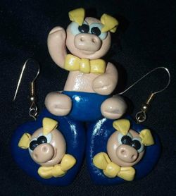 X3 VINTAGE HANDMADE PIGGY PIG EARRINGS PIN BROOCH JEWELRY TRIO COLLECTABLE SET$15San Tan Valley, AZ